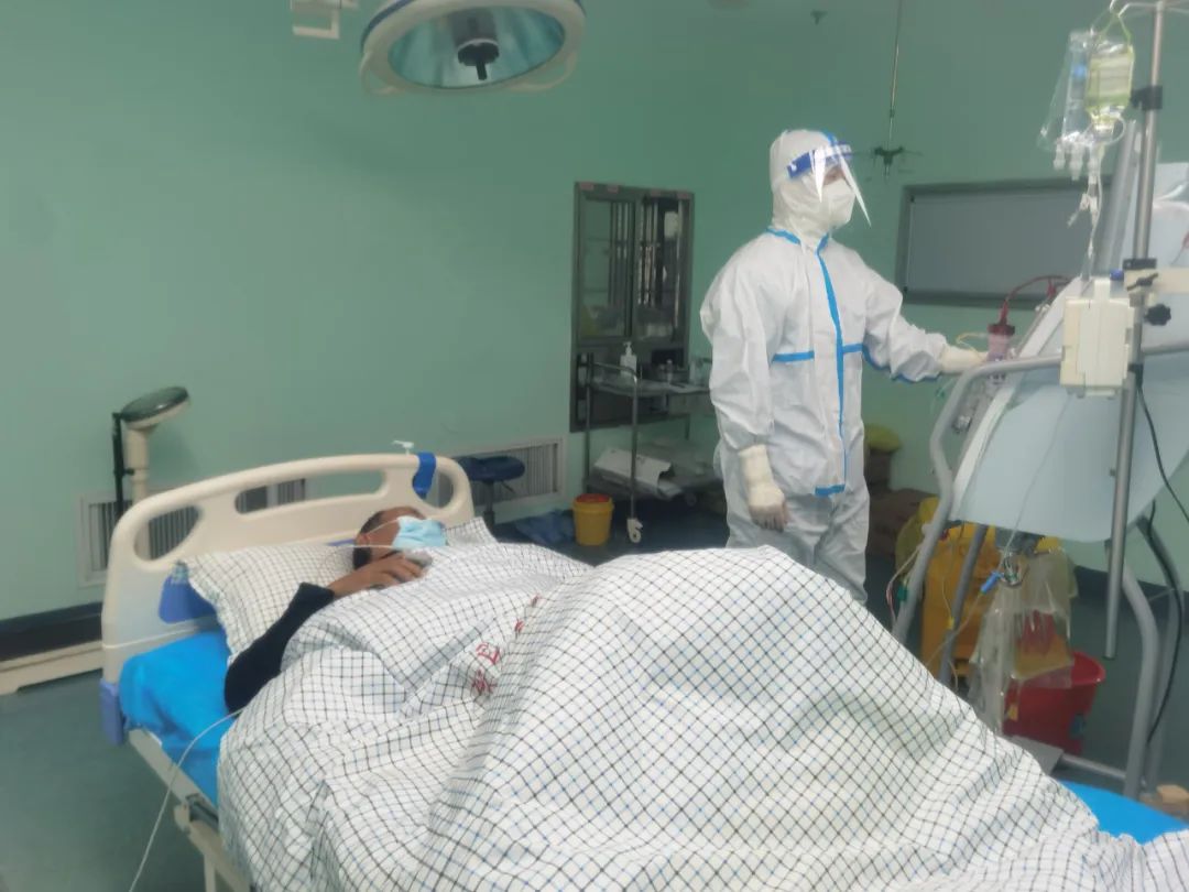 在“黄码医院”,是一个怎样的惊心动魄的工作节奏?作为一名年轻大夫,来自神经外科的王元有着其中的深刻体会。他在日记中这样写道:进驻“黄码医院”5天,共收住4名脑出血病人,其中实施开颅手术3例,患者均为高龄合并基础疾病较多。2例脑基底节区出血,1例右侧颞顶部出血,3名患者入院时昏迷不醒,血肿量较大,发生脑疝,若不及时手术,随时有死亡的可能性。在麻醉师王军的配合下,全麻下行开颅置管血肿引流术,术中抽出大部分血肿,术后病人清醒,成功挽救了病人生命。其中一名脑出血病人既往有慢性支气管炎病史,卧床后出现呼吸困难,武玉胜主任紧急气管插管,给予呼吸机辅助通气,病人转危为安。为了保障呼吸机用氧,工作人员从医院东门一趟趟推着氧气瓶来回奔波,穿着厚重的防护服,虽然汗流浃背,但看到病人病情缓解,内心还是很欣慰的。除了照顾好几名危重病人,还力所能及协助外科兄弟们工作,骨外科手术多且复杂,帮助郭伟医生完成2例手术,并且我还参与外科大夫值夜班。所有的大夫、护理员都是任劳任怨,兢兢业业,时常不能按时吃上饭,或者饭菜早已凉透。时常半夜接到电话,立马赶往“黄码医院”处理病人病情变化,一晚上能接十几个电话是常事。