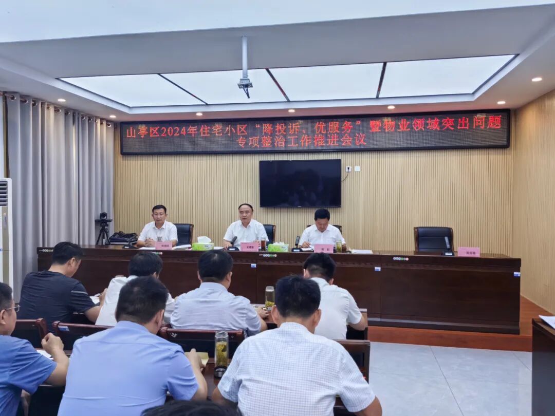 会议传达了《山亭区2024年住宅小区“降投诉、优服务”暨物业领域突出问题专项整治工作方案》;书面印发了《山亭区群众身边不正之风和腐败问题集中整治电动自行车“小切口”工作方案》;区住建局物业办,山城街道灵芝湖社区、紫薇小区及君兴物业、翔实物业、欧韵宜家物业、欧情物业负责人分别进行了表态发言。