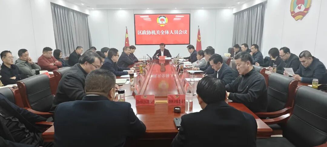 1月24日,区政协召开机关全体人员会议。区政协党组书记、主席李洪波出席并讲话。区政协党组副书记、副主席陈友华主持会议,区政协党组成员、副主席褚红丽,副主席李平、陈博、史晓晔、孙付堂,党组成员李宗国,党组成员、秘书长刘翔出席会议。