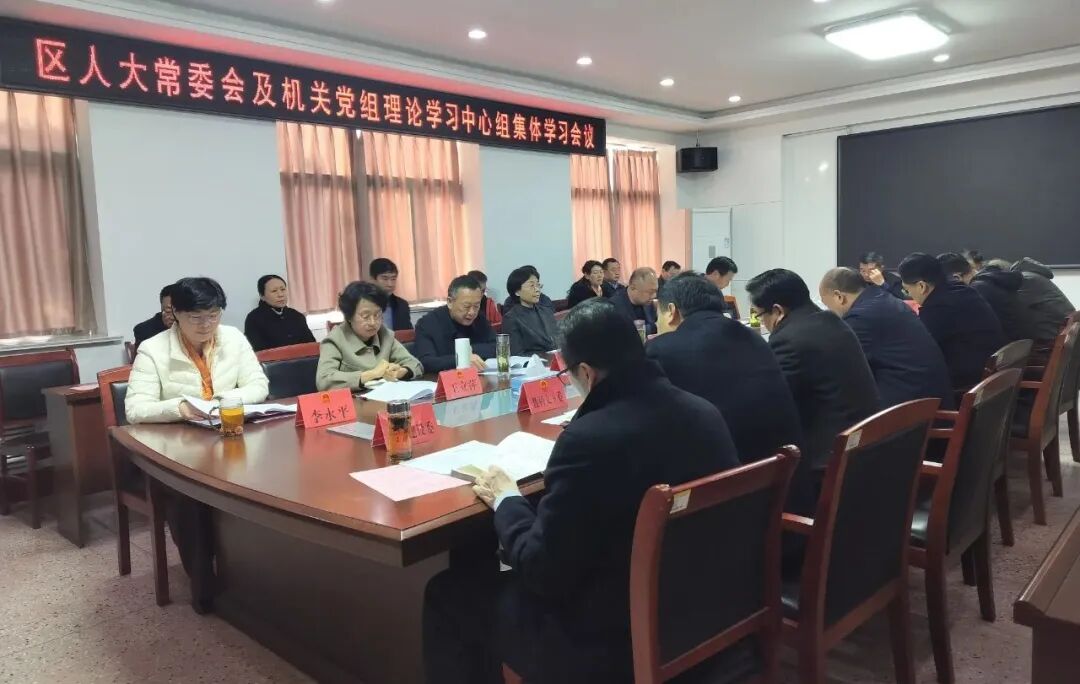 2月11日,区人大常委会及机关党组理论学习中心组举行集体学习会议。区人大常委会党组书记、主任李霞主持会议并讲话,党组副书记、副主任李勇,党组成员满孝东,党组成员、副主任张成国、王建军、李永平,党组成员、办公室主任张亚及机关党组成员参加。区人大常委会副主任王立萍及机关全体人员列席会议。
