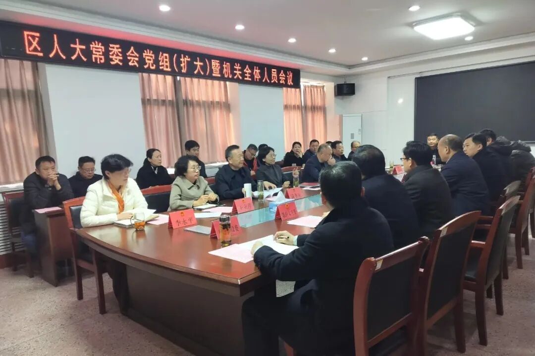 2月11日上午,区人大常委会党组(扩大)暨机关全体人员会议召开,传达学习全省抓改革创新促高质量发展大会、枣庄干部讲堂“新春第一讲”、全区持续深化干部思想能力作风建设暨“重点工作攻坚突破年”动员大会精神,通报新调整常委会班子成员职责分工,对近期工作进行安排部署。区人大常委会党组书记、主任李霞主持会议并讲话。区人大常委会领导班子成员、机关全体在职人员参加会议。