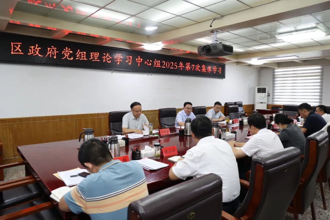 7月24日,区政府党组理论学习中心组举行集体学习。区委副书记、区政府党组书记、区长刘洪鹏主持并讲话。周琪、王绪景、戴娟、宗晓庆出席,侯波涛列席。