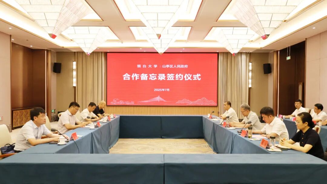 现场调研结束后,在与会领导的共同见证下,杨玉军、戴娟共同签署《烟台大学与山亭区人民政府战略合作备忘录》。签约仪式上,王德海详细介绍了我区丰富的山水资源、人文资源及良好的生态环境。他指出,自2012年以来,烟台大学先后选派六轮八批27名优秀“第一书记”,为山亭发展带来了宝贵的人才、政策与项目支持,这份深情厚谊,山亭人民铭记于心。今日的签约,是双方优势的深度耦合、发展愿景的强烈共鸣,必将为山亭高质量发展注入澎湃动能。山亭区将以最大的诚意、最优的环境、最高的效率,当好“金牌店小二”和“最佳合伙人”,全力保障合作项目落地生根;热切期盼烟台大学将更多前沿科技“栽种”在山亭,让高端人才“扎根”在山亭,使创新成果“丰收”在山亭。山亭区将以此次签约为新的起点,拓宽合作领域,提升合作层次,全力打造校地合作、协同创新、共赢发展新典范,让合作之花结出更加丰硕的果实。