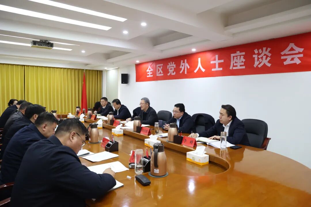 12月26日,全区党外人士座谈会召开。区委书记王德海主持并讲话。区委副书记、区长刘洪鹏,李洪波、李峰、刘杰出席,区各民主党派主委、区工商联主席、无党派人士代表参加。