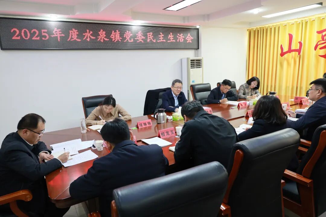 在水泉镇党委2025年度民主生活会上,通报了水泉镇党委深入贯彻中央八项规定精神学习教育整改整治情况、2024年度民主生活会整改落实情况和本次民主生活会征求意见情况,以及《关于2025年水泉镇党委贯彻落实中央八项规定精神情况的报告》。杨国华代表党委班子作对照检查,班子成员逐一进行对照检查并开展相互批评。
