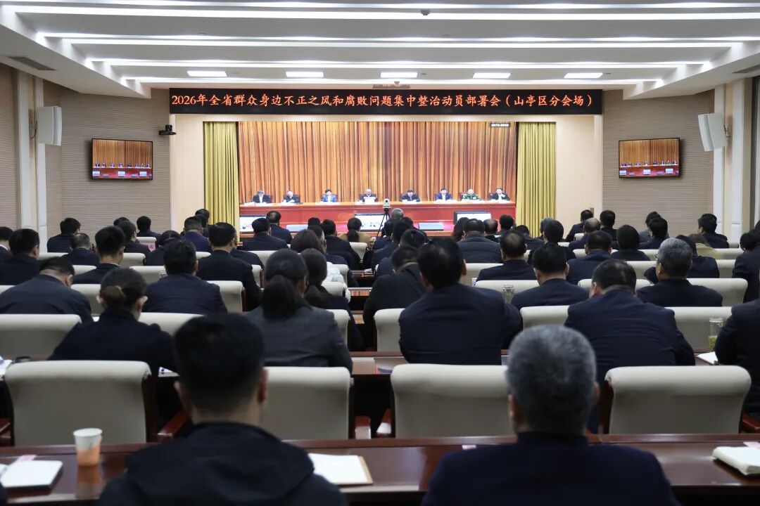 2月25日上午,2026年全省群众身边不正之风和腐败问题集中整治动员部署会在济南召开。会议深入学习贯彻习近平总书记关于整治群众身边不正之风和腐败问题系列重要指示批示精神,全面落实二十届中央纪委五次全会部署要求和中央纪委国家监委有关工作安排,总结工作,分析形势,部署任务,动员全省上下全力打好集中整治攻坚决战。区委书记王德海,区委副书记、区长刘洪鹏,区委常委,区人大常委会主任、区政协主席,山亭经济开发区管委会主任,区政府副区长,区法院院长、区检察院检察长等在我区分会场收听收看会议实况。