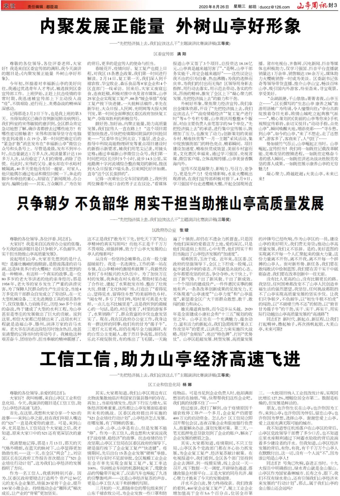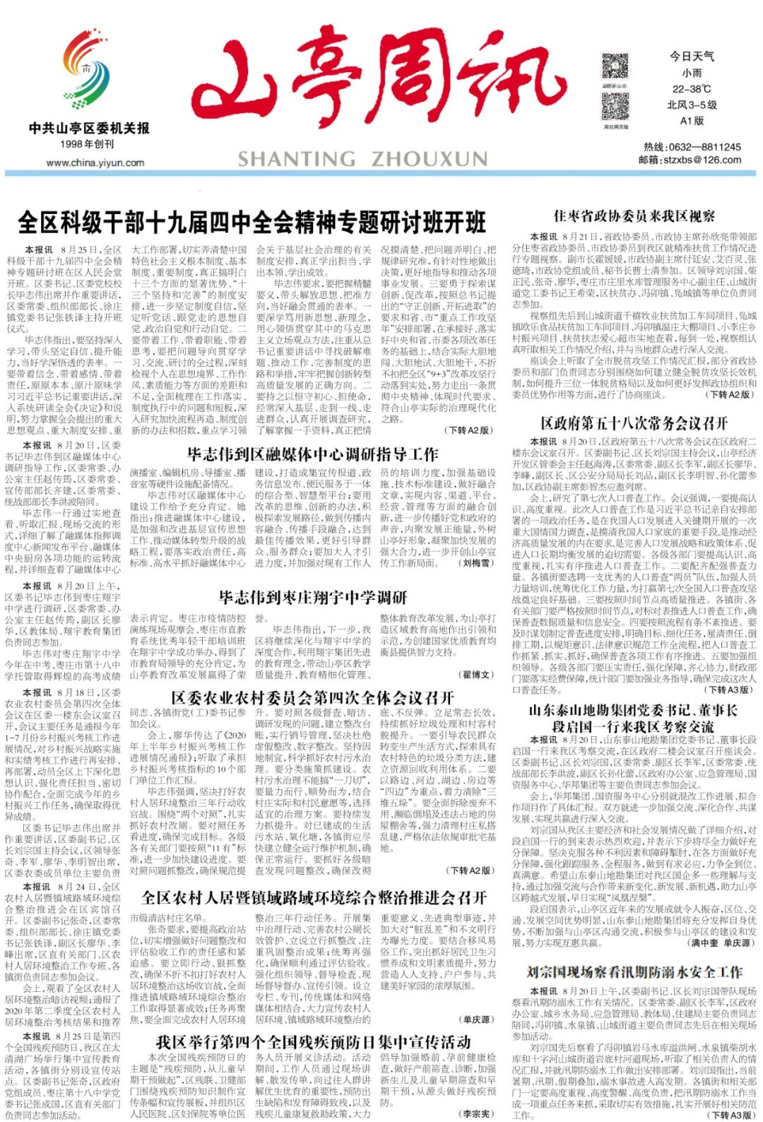 山亭周讯2020年8月26日第1522期