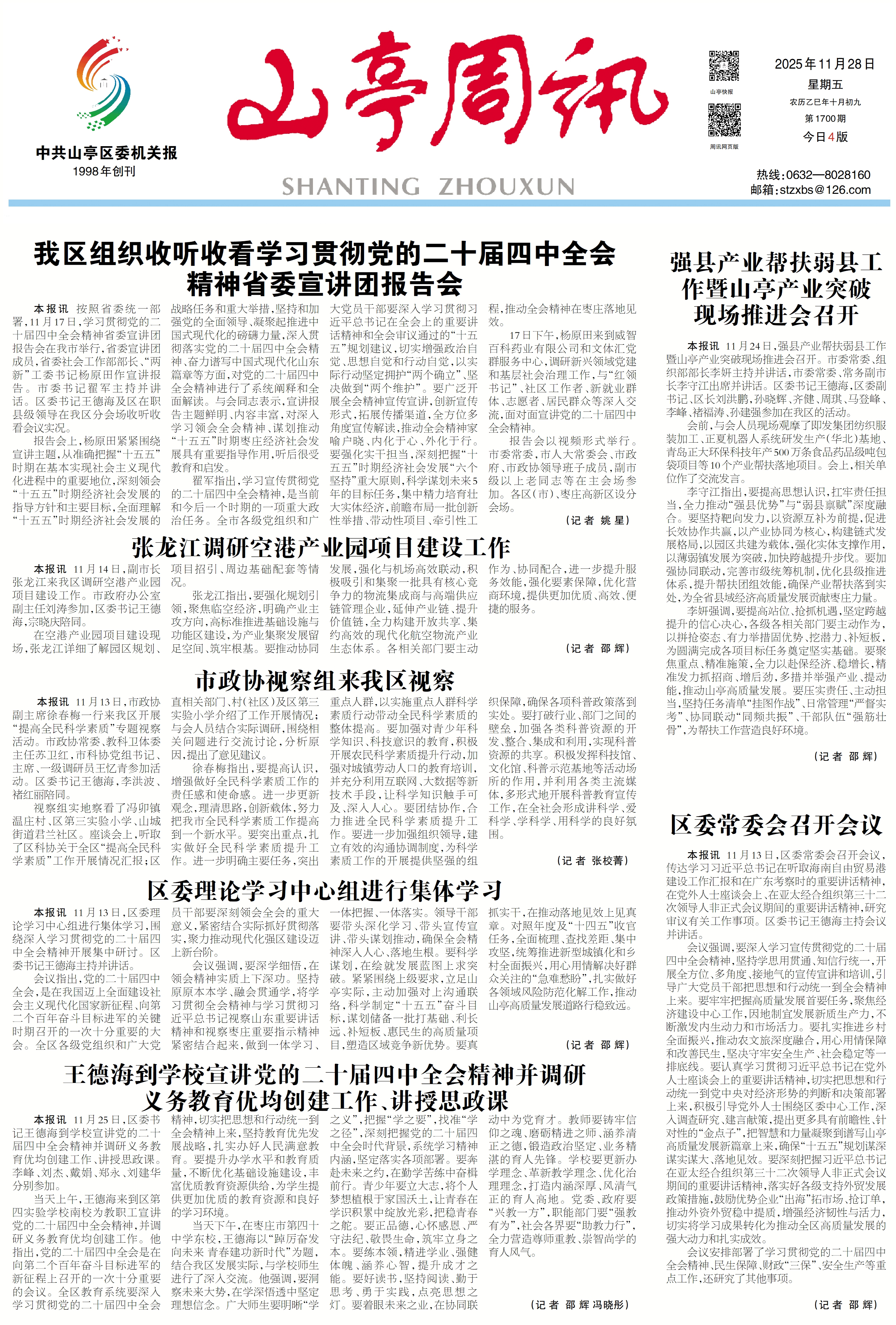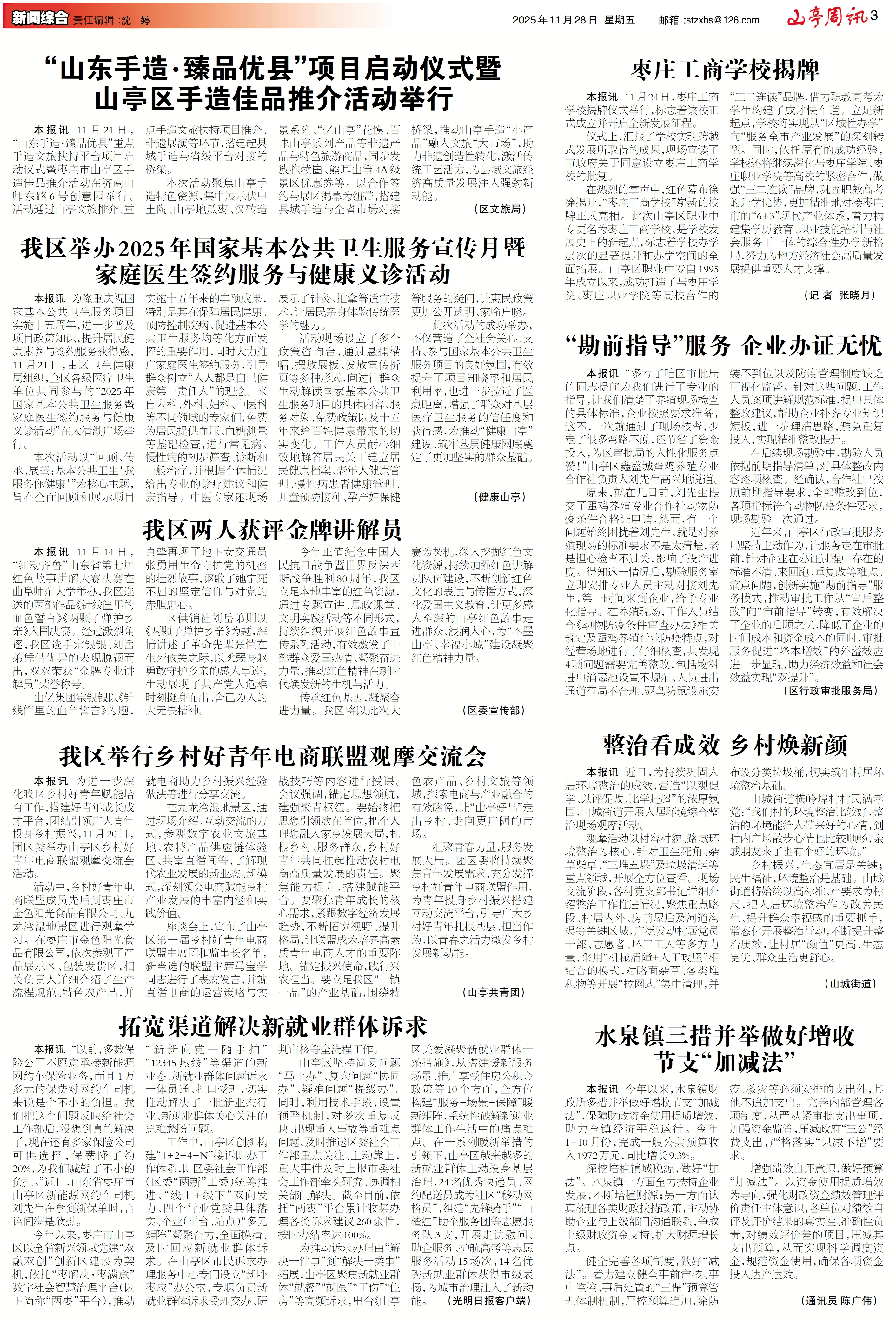 山亭周讯2025年11月28日第1700期