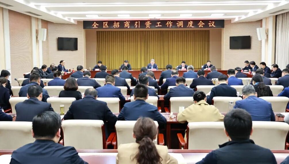 王德海强调,要坚持“优服务、强保障”,推动项目投产达效。各级各部门要坚持“项目为王、招商为要、落地为大、服务为本”的理念,集聚整体合力推动招商线索转化落地、投产达效。要强化要素保障。当好政企之间的“联络员”、解决困难的“服务员”、贴心服务的“店小二”,确保项目快落地、快开工、快建设、快达效。要建强载体平台。坚持把园区作为“稀缺资源”,发挥园区“主战场、主阵地”作用,扎实开展“企业满园”三年攻坚突破行动,不断提升园区承载能力。要优化营商环境。落实好县级领导与企业常态化沟通交流机制,办好“企业家日”“企业家沙龙”系列活动,全力打造“办事不求人”的一流营商环境,让企业家心无旁骛做实业、谋发展。要坚持“严督导、实考核”,压实项目招引责任。要坚持示范引领。县级领导要把主要精力用在招商引资上,多在招商一线洽谈商议,多为项目落地解决问题;各部门各单位主要负责同志要把招商引资作为“头号工程”,带动全区上下形成大招商、招大商的浓厚氛围。要建强招商队伍。强化专业化招商队伍建设,全面提高招商引资实战能力,锤炼更多洞悉发展大势、熟悉产业经济、掌握投资政策、精通商务谈判的复合型招商人才。要强化督导考核。综合运用“周调度、月考核”等办法跟踪问效,把招商一线作为选人用人的练兵场,对有重大招商实绩的人员,大张旗鼓表彰奖励、提拔重用。