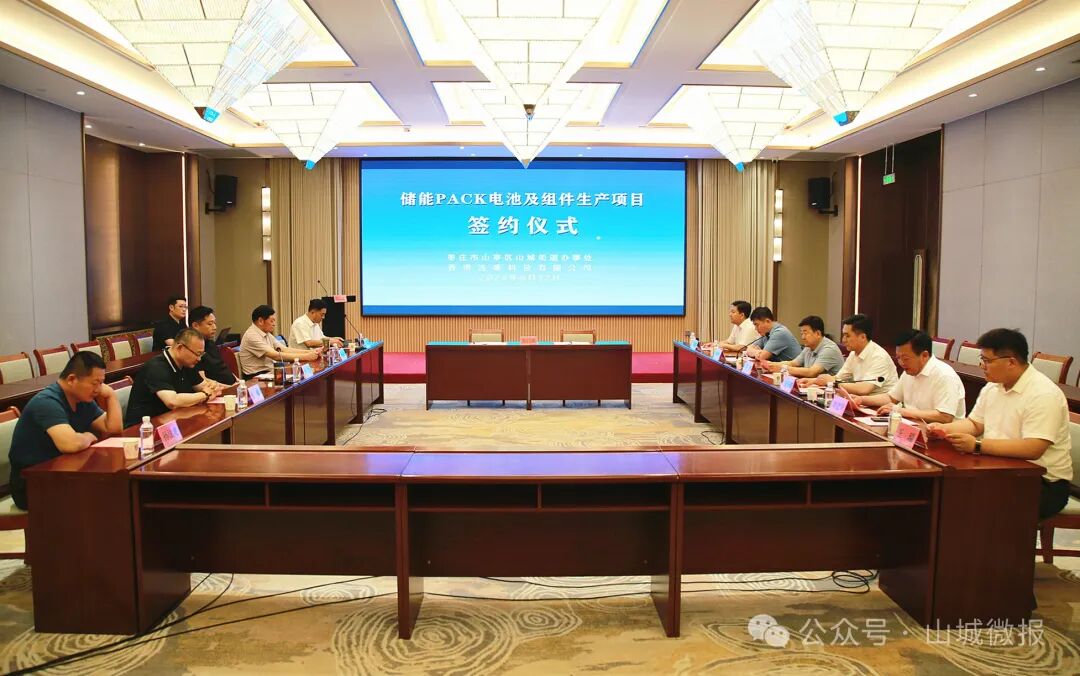 6月12日,山城街道办事处与香港浩遠科技有限公司储能PACK电池及组件生产项目签约仪式在蓝海大饭店钧华厅举行。香港浩遠科技有限公司总经理郭浩,香港浩遠科技有限公司副总经理刘培亚,乾锐能源(山东)有限公司常务副总经理崔琳,乾锐能源(山东)有限公司副总经理于成超,乾锐能源(山东)有限公司财务总监孙法虎,山亭经济开发区党工委书记、管委会主任齐健,山亭区发展和改革局党组书记、局长张开耀,山亭区商务和投资促进局党组书记、局长张松青,山亭区山城街道党工委书记刘建华,山亭区山城街道党工委副书记、办事处主任张明武,山城街道党工委副书记王瑞等出席签约仪式。签约仪式由山城街道党工委书记刘建华主持。