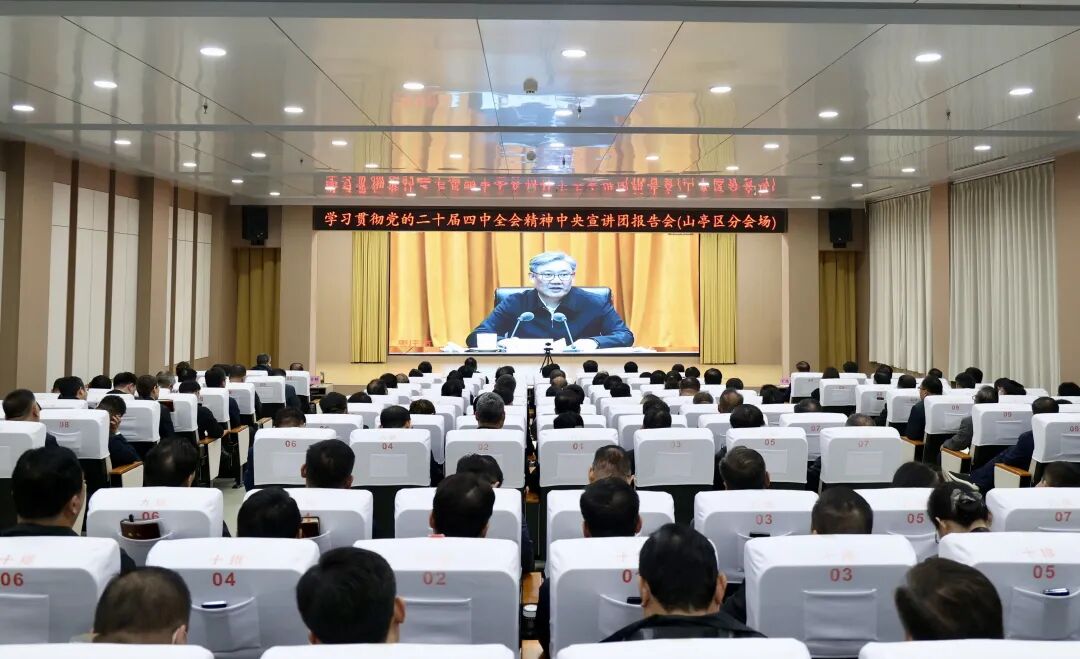 按照党中央统一部署,11月9日上午,学习贯彻党的二十届四中全会精神中央宣讲团报告会在济南举行,中央宣讲团成员、商务部党组书记、部长王文涛作宣讲报告。区委书记王德海在主会场参会,区委副书记、区长刘洪鹏,李霞、李洪波、王彪、齐健、周琪、冯华、马登峰、王绪景、刘伟、李峰、刘杰等在职县级领导在我区分会场收听收看会议实况。