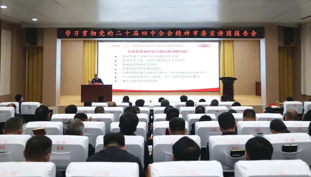 按照市委统一部署,11月26日,学习贯彻党的二十届四中全会精神市委宣讲团报告会在我区举行,市委宣讲团成员,市财政局党组书记、局长孙中礼作宣讲报告。区委副书记、区长刘洪鹏主持并讲话。