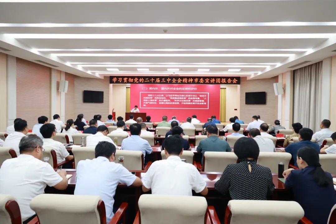 根据市委统一部署,8月27日,学习贯彻党的二十届三中全会精神市委宣讲团报告会在我区举行。市委宣讲团成员,市工信局党组书记、局长杜飞廉作宣讲报告。区委书记王德海主持。区委副书记、区长刘洪鹏陪同调研活动。