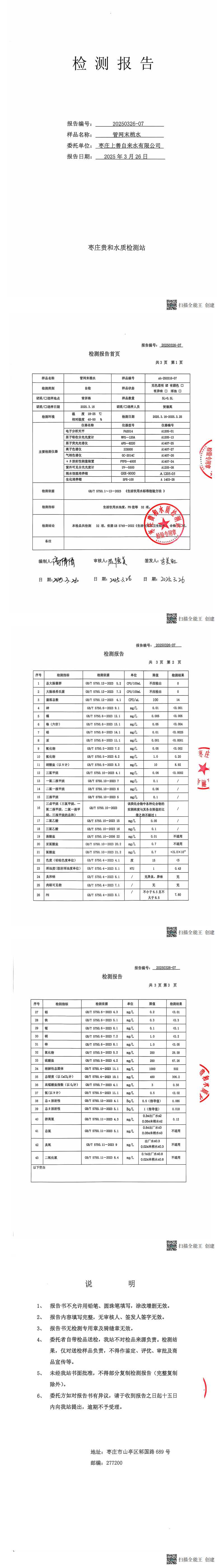 【管网末梢水】2025年3月份山亭区管网末梢水检测报告