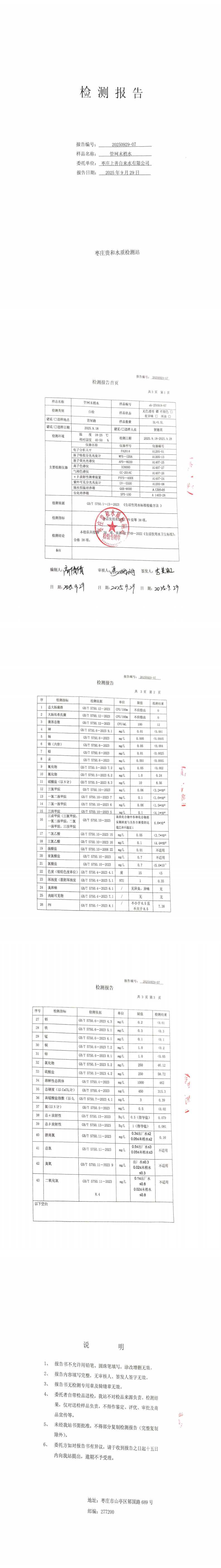 【管网末梢水】2025年9月份山亭区管网末梢水检测报告