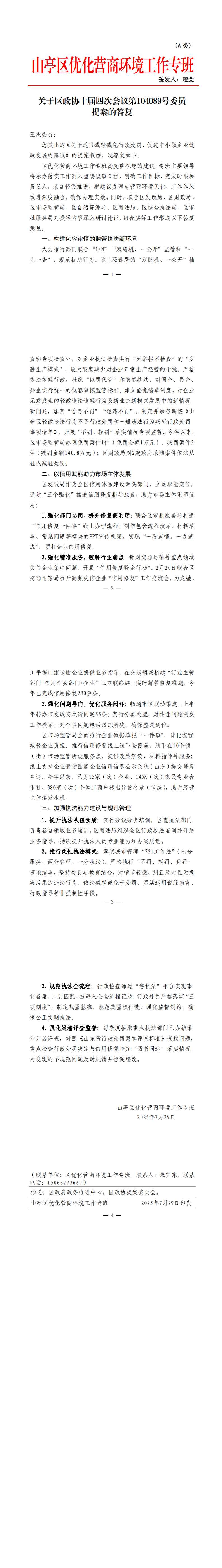 关于区政协十届四次会议第104089号委员提案(关于适当减轻减免行政处罚、促进中小微企业健 康发展)的答复