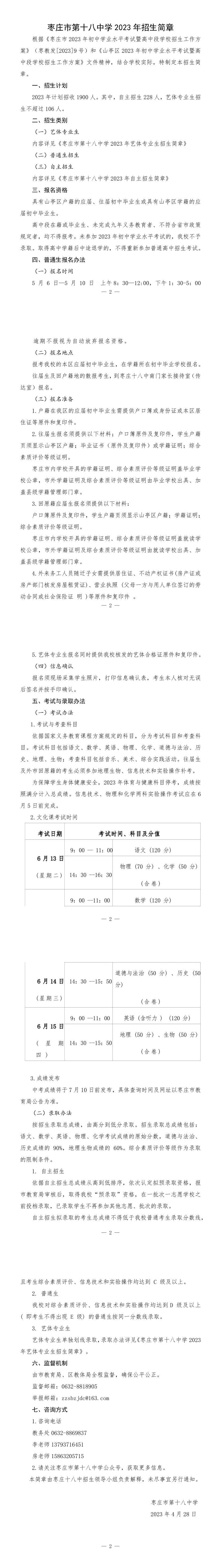 【招生录取】2023年枣庄市第十八中学招生信息