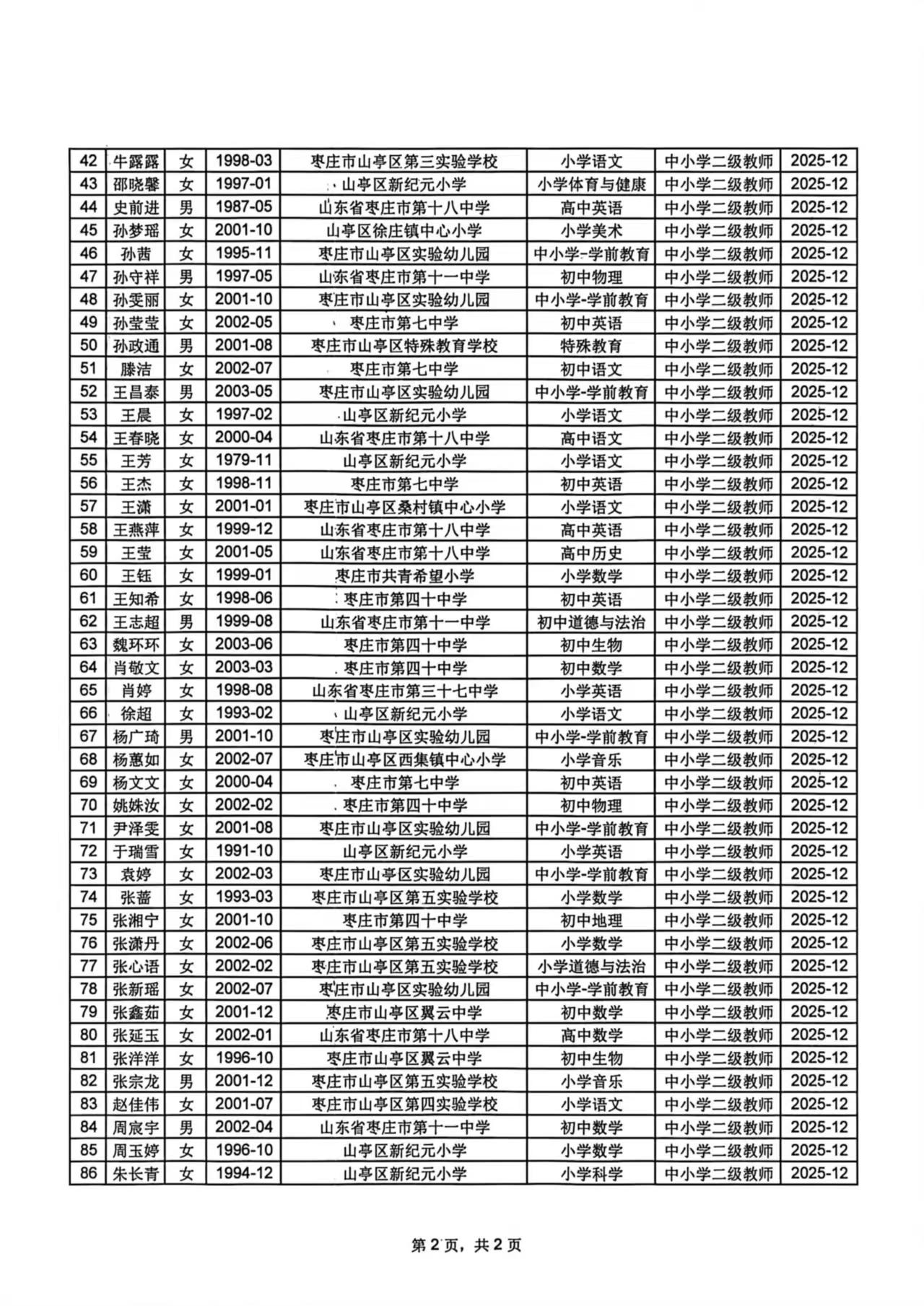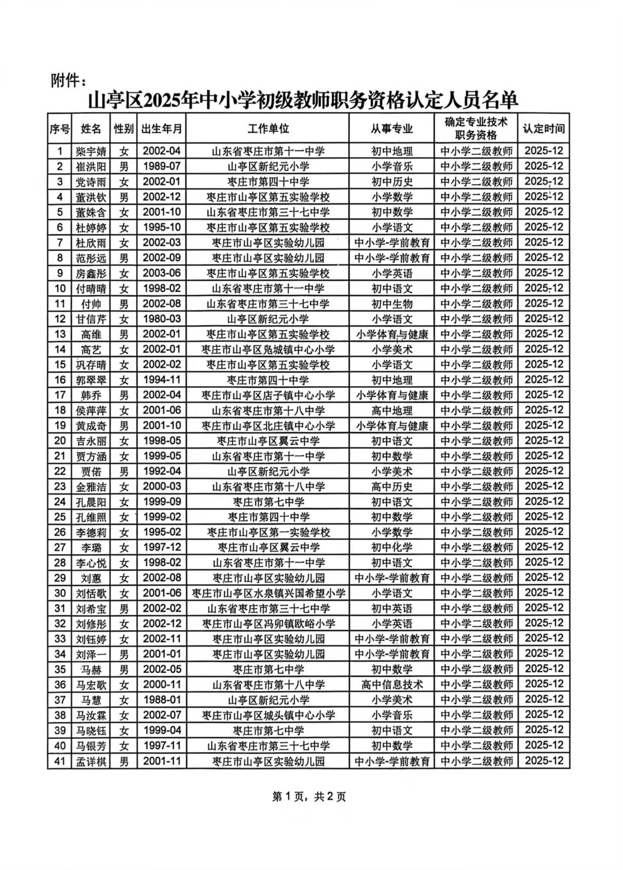 关于公布山亭区2025年中小学初级教师职务资格认定结果的通知