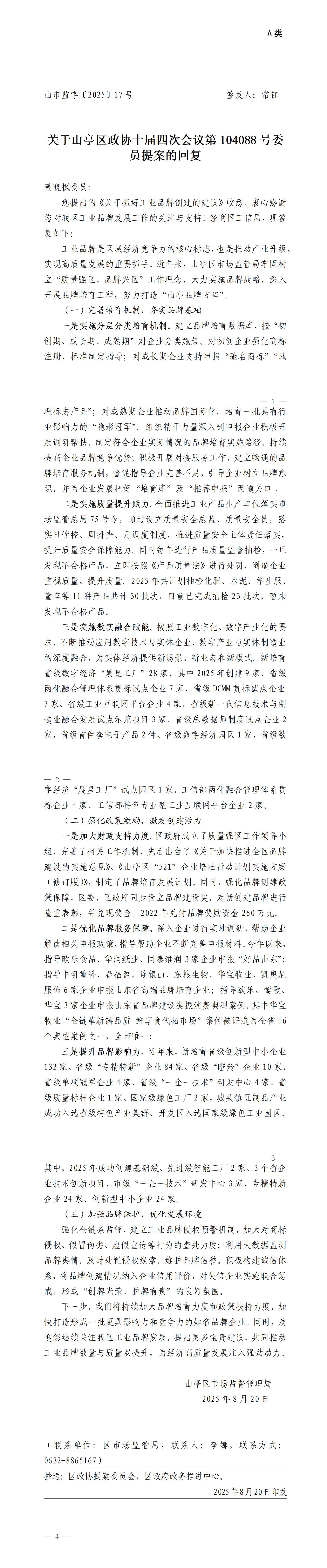 关于区政协十届四次会议第104088号委员提案(关于抓好工业品牌创建)的回复