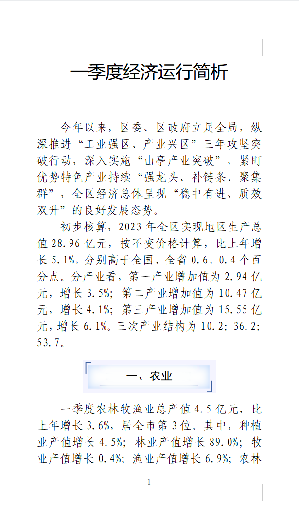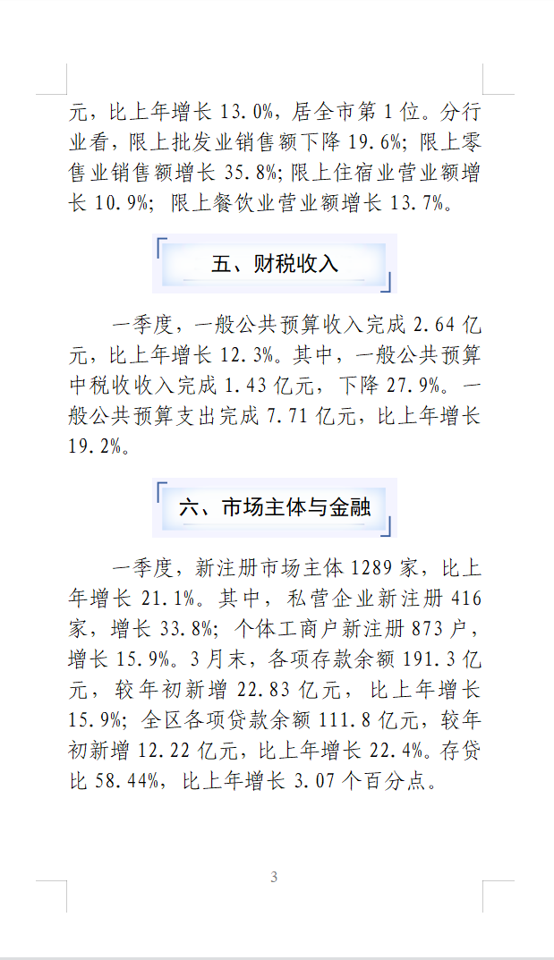 【统计月报】2023年1-3月山亭区统计月报(含统计数据及分析解读)