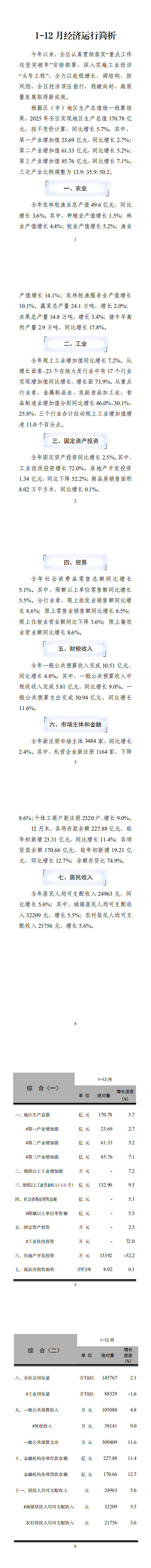 【统计月报】2025年1-12月份山亭区统计月报(含统计数据及分析解读)