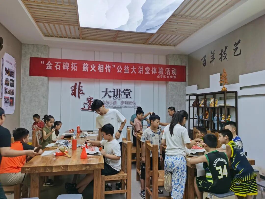 为进一步弘扬中华民族优秀传统文化,使碑拓传统技艺这项非物质文化遗产得以更好的传承,山亭区文化馆在区非物质文化遗产遗产展览馆暨“山东手造 亭有匠心”展销专区开展了“金石碑拓,薪火相传”公益大讲堂体验活动。