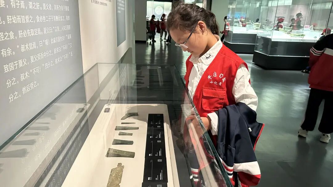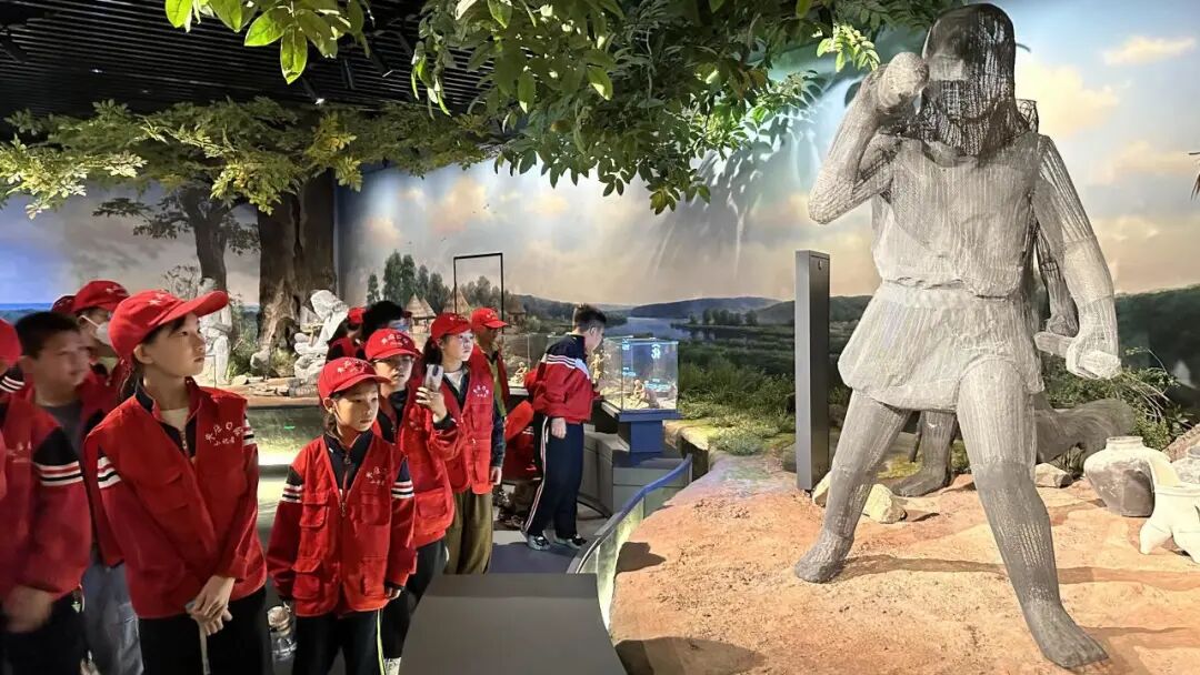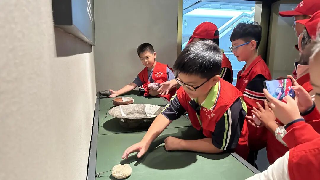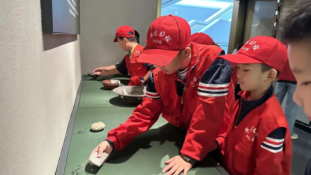 9月24日,枣庄日报小记者团组织西集镇中心小学的小记者们走进枣庄市博物馆,开始了一次“穿越千年”的历史文化研学活动。首先跟随讲解老师的脚步来到了鸿蒙初辟——新石器时代展厅,了解到了远古先民从蛮荒之中披荆斩棘,跨越六千多年的历史长河足迹遍布枣庄各处的山川河流,他们耜耕渔猎,筑房定居,文明由此伊始,文化由此衍生。