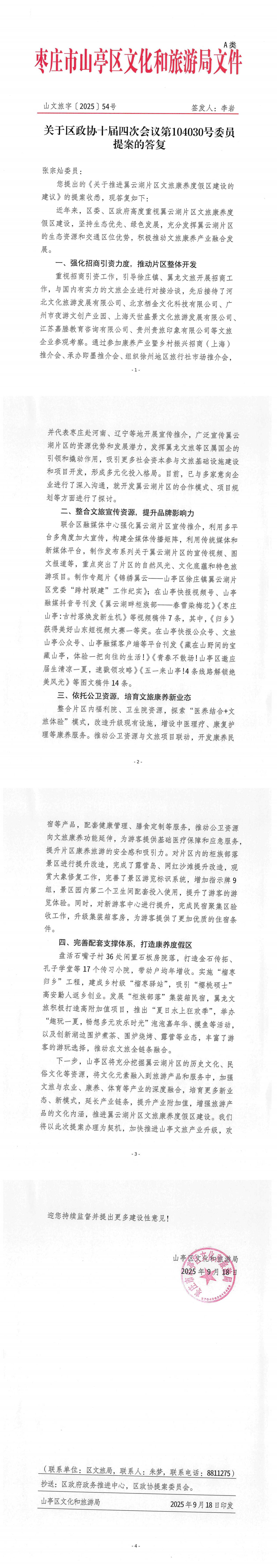 关于区政协十届四次会议第104030号委员提案(关于推进翼云湖片区文旅康养度假区建设)的答复