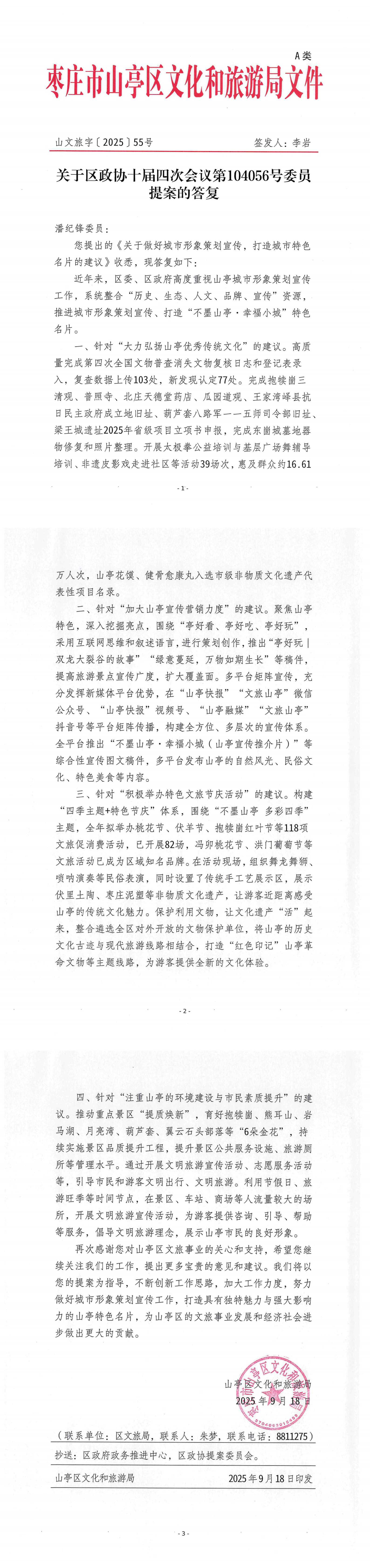 关于区政协十届四次会议第104056号委员提案(关于做好城市形象策划宣传,打造城市特色名片)的答复