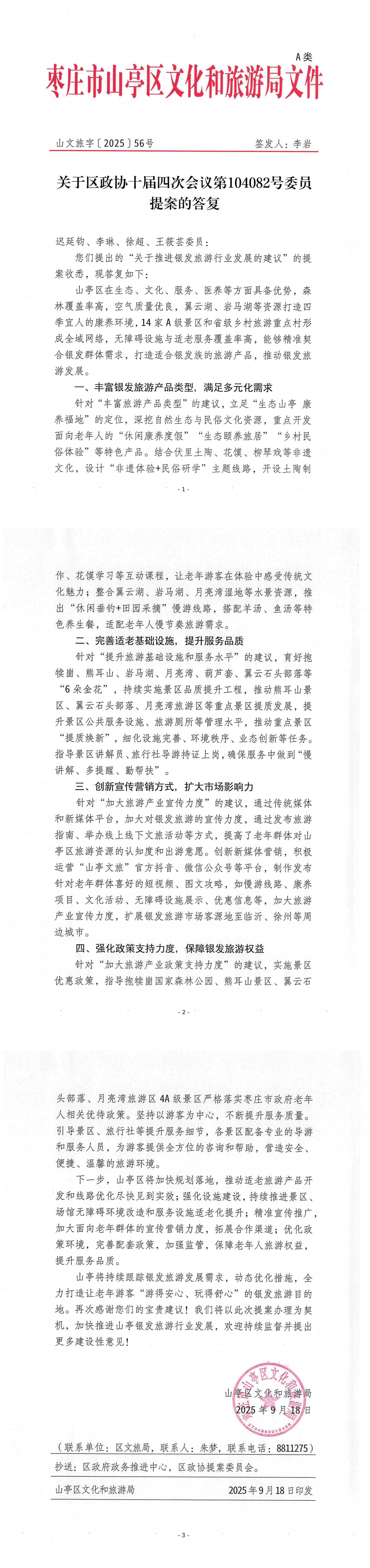 关于区政协十届四次会议第104082号委员提案(关于推进银发旅游行业发展)的答复