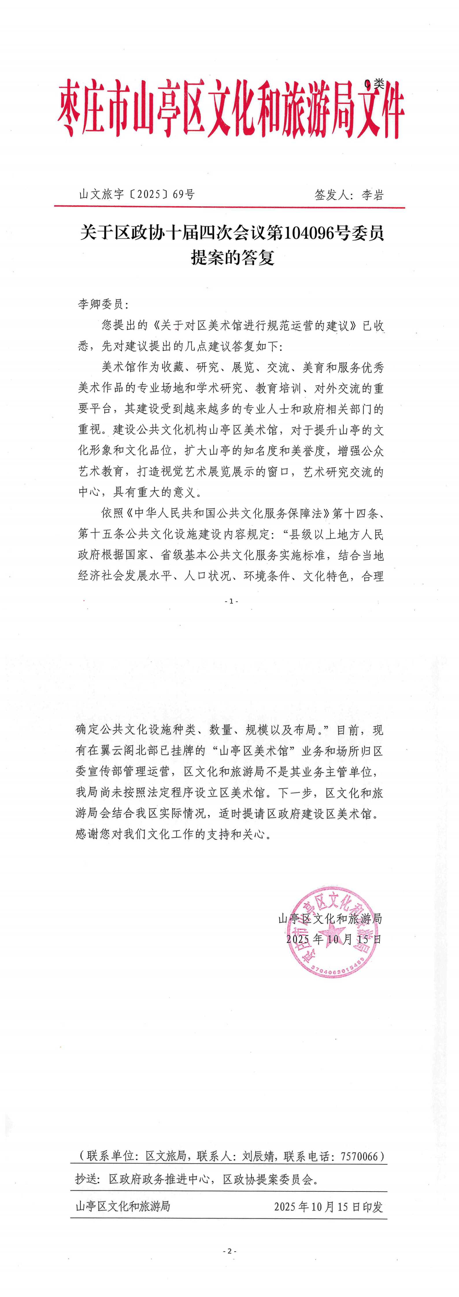 关于区政协十届四次会议第104096号委员提案(关于对区美术馆进行规范运营)的答复