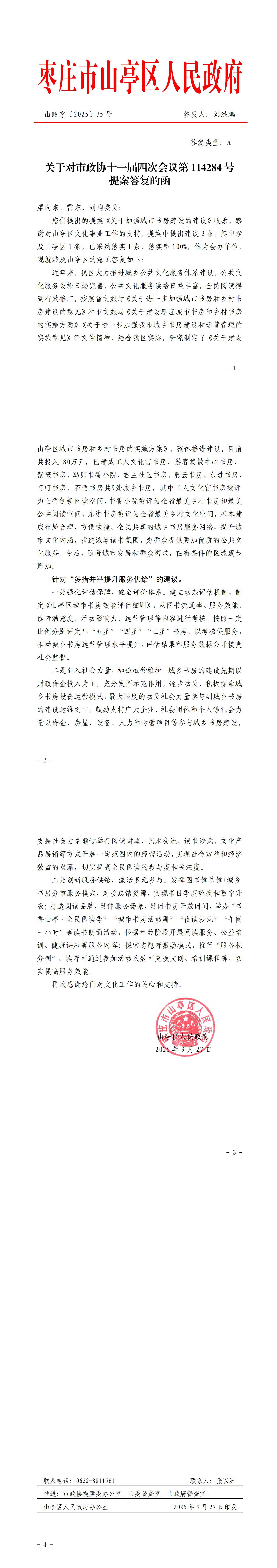关于对市政协十一届四次会议第114284号委员提案(关于加强城市书房建设)的答复
