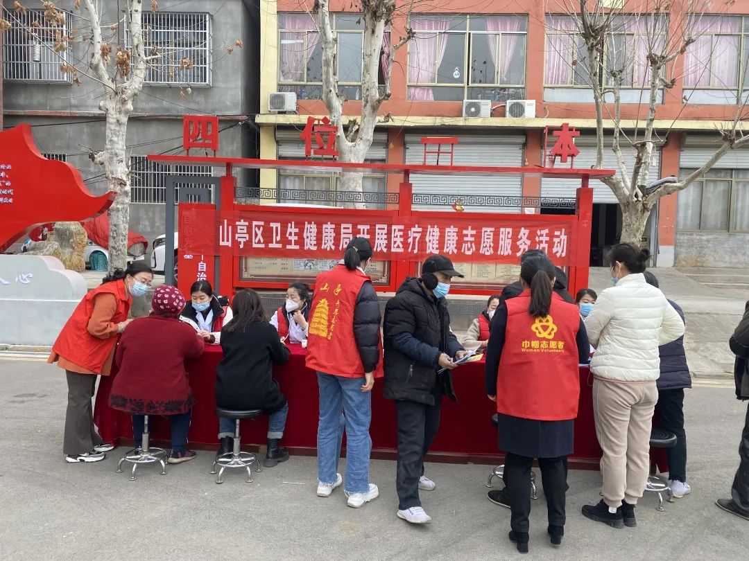 揭牌仪式结束后,山城街道社区卫生服务中心医护人员、妇联、团委、文旅志愿者为社区群众进行了免费健康查体和卫生健康知识宣传服务。