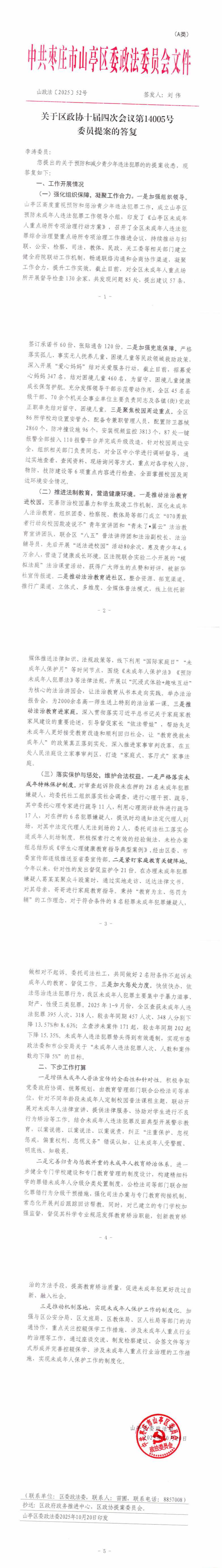 关于区政协十届四次会议第14005号委员提案(关于预防和减少青少年违法犯罪)的答复