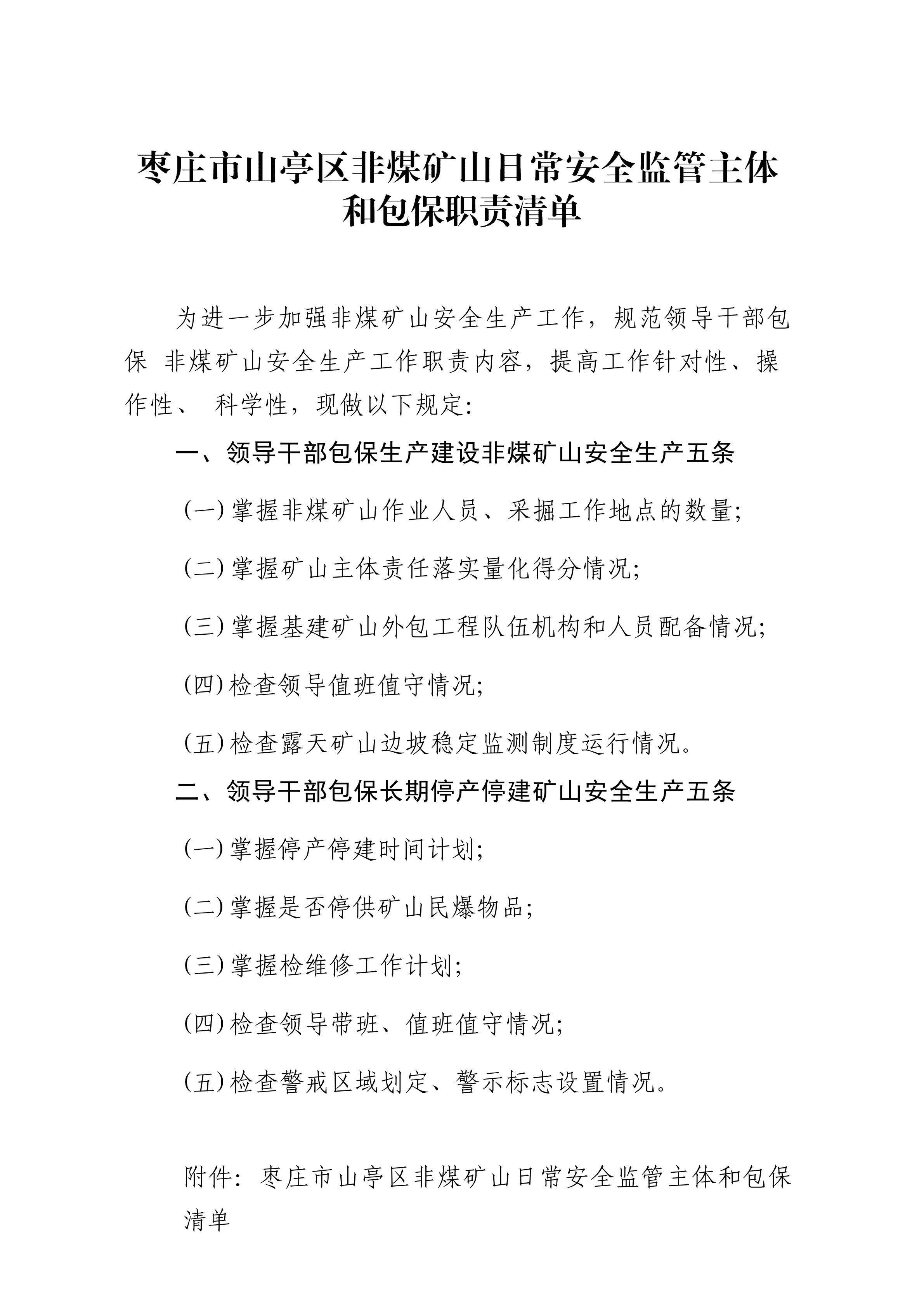 枣庄市山亭区非煤矿山日常安全监管主体和包保职责清单