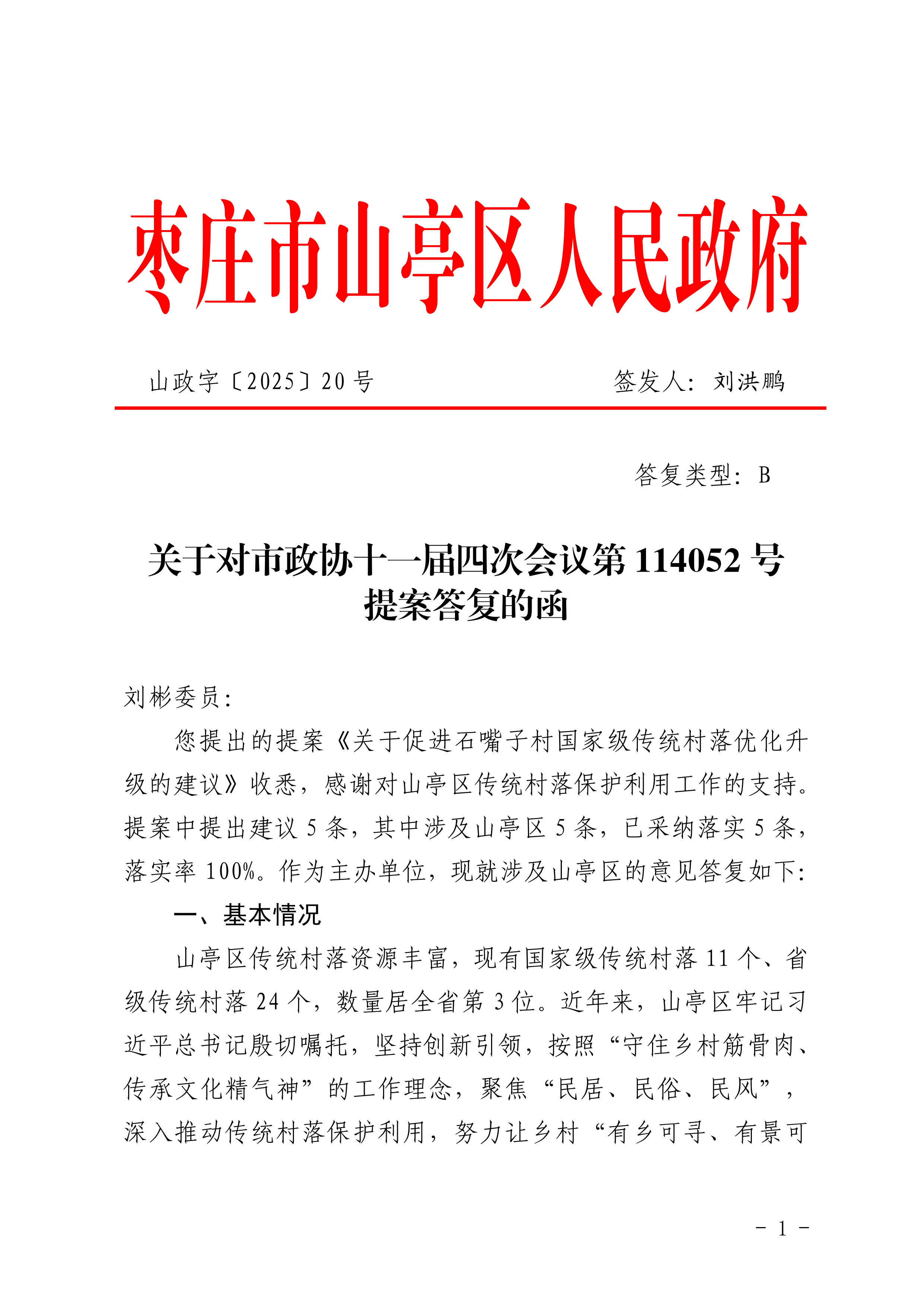 关于对市政协十一届四次会议第114052号委员提案(关于促进石嘴子村国家级传统村落优化升级)的答复