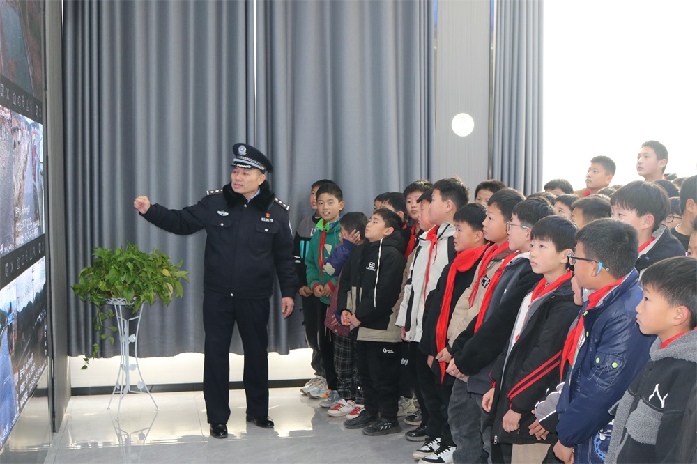 活动中,凫城派出所民警带领同学们参观了办公室、综合指挥室、生态警务工作室等场所,了解各类设备功能及场所功能区设置和使用,通过实地体验和民警的介绍让同学们对派出所工作和警察这一职业有了更直观的认识和了解,体会到了警察工作的艰辛和荣耀,不仅增强了同学们的安全防范意识,还拉近了“童心”和“警心”的距离。随后,民警通过PPT、发放宣传资料等方式,用通俗易懂的语言为同学们讲解如何防范网络诈骗、防欺凌等知识,呼吁大家从小树立安全观念和法制观念,做好自我防范,并把今天学到的知识传递给家人,为维护社会治安稳定贡献“小”力量。
